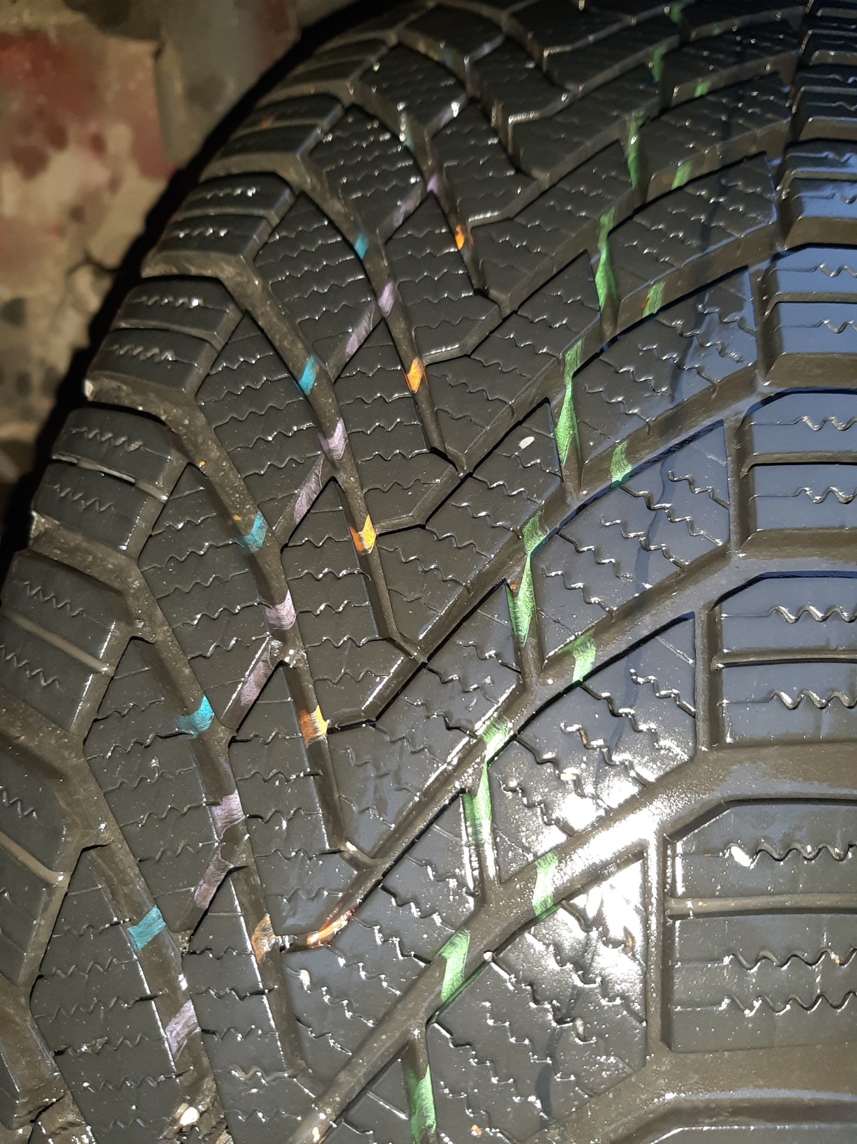 Ето снимки на гуми Континентал с пробег 10000 км и на 8 години.Измита и неизмита.