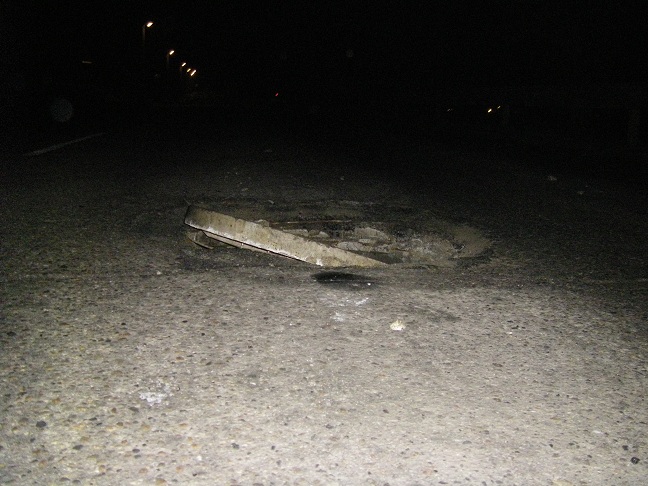 Е вижте преди малко в Нови Искър - Градът на дупките и разбитите пътища (един път има в тоя град и той не става за нищо). Само металната ми кора ме спаси - така ме задра с тоя остър ъгъл...