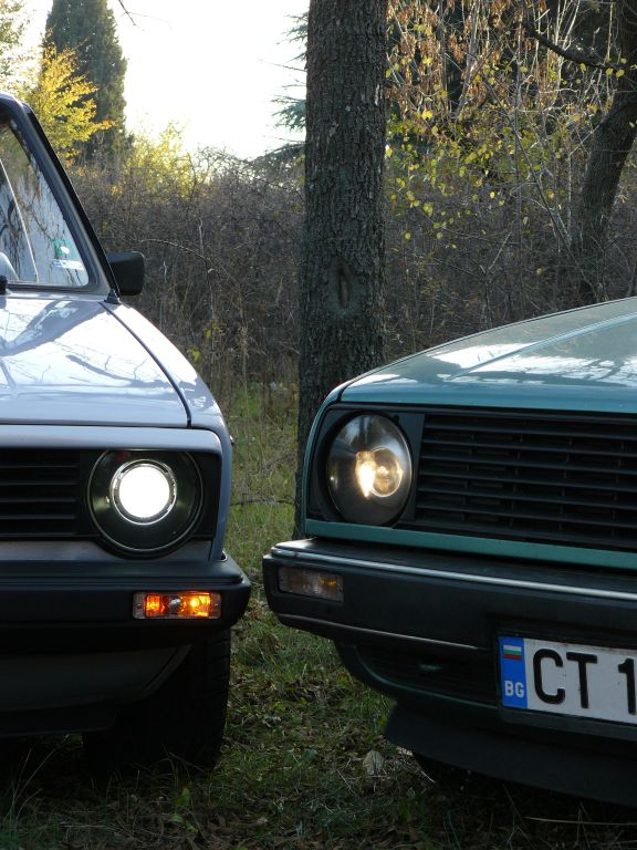Вляво - заводски ксенон 4200К мисля беше, вдясно - халоген H7. Кое казваш жълтеело?