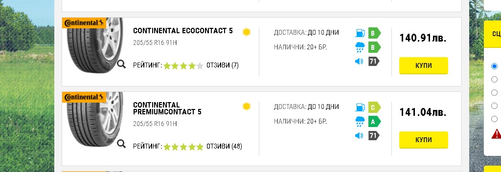 Не зная, какво си гледал. Ето на картинката разликата от ЕкоКонтакт до ПремиумКонтакт в еднакъв размер и скоростен идекс. По 170 са усилените XL. Двата модела са предназначи за различни таргет-групи. Еко - респективно са малко по-пластмасови и издържат на повече пробег, докато Премиум са по-меки, респективно с по-добро сцепление и свършват по-бързо. Карал съм и с едните, и с другите. Реално това са два качествени продукта, но с различни параметри и съответно на една цена почти.