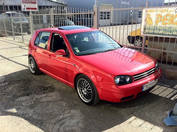 Няма снимки,защото имам дупка на предния капак(хвърлиха ми камък),а и Bad Look имам който трябва да се завари,броня да се боядисва,когато всичко това е готово ще има снимки.