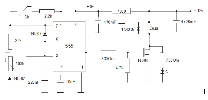 Генератора произвежда правоъгълни импулси и в случая мисля, че няма толкова значение продължителността на импулса, тока на импулса би трябвало да е един и същ.???