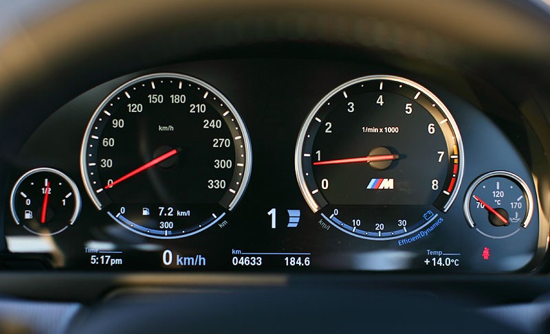 Ами да долната част е дисплей, но основно си е аналогов. Мисля че е доста хитро че долната част е дисплей де. Всъщност това е таблото на новата 5-ца F10 а колкото до илюминацията само стрелките се осветяват в оранжево.