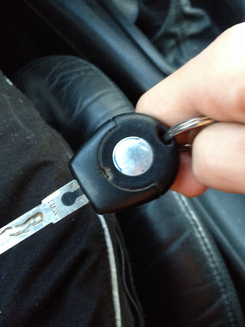 Изчопли го това с отвертка или шило. Намери ключар, купи ново и го залепи на мястото на старото.