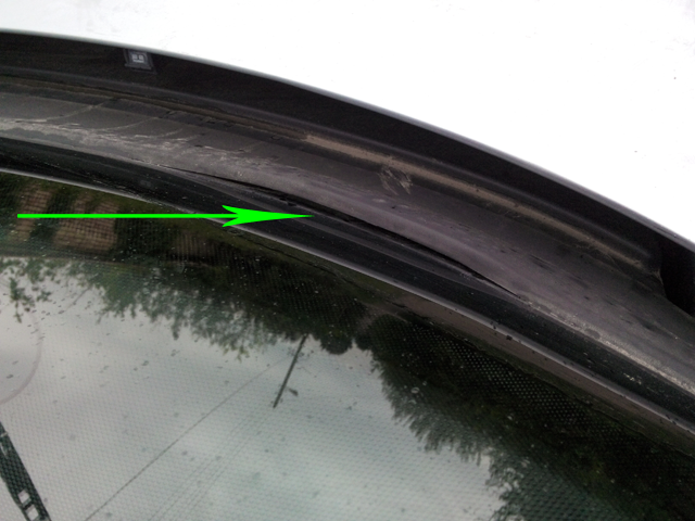 Прикачил съм снимка с дупка между предното стъкло (гледано отгоре) и гумения уплътнител. Бялото е предния капак.
