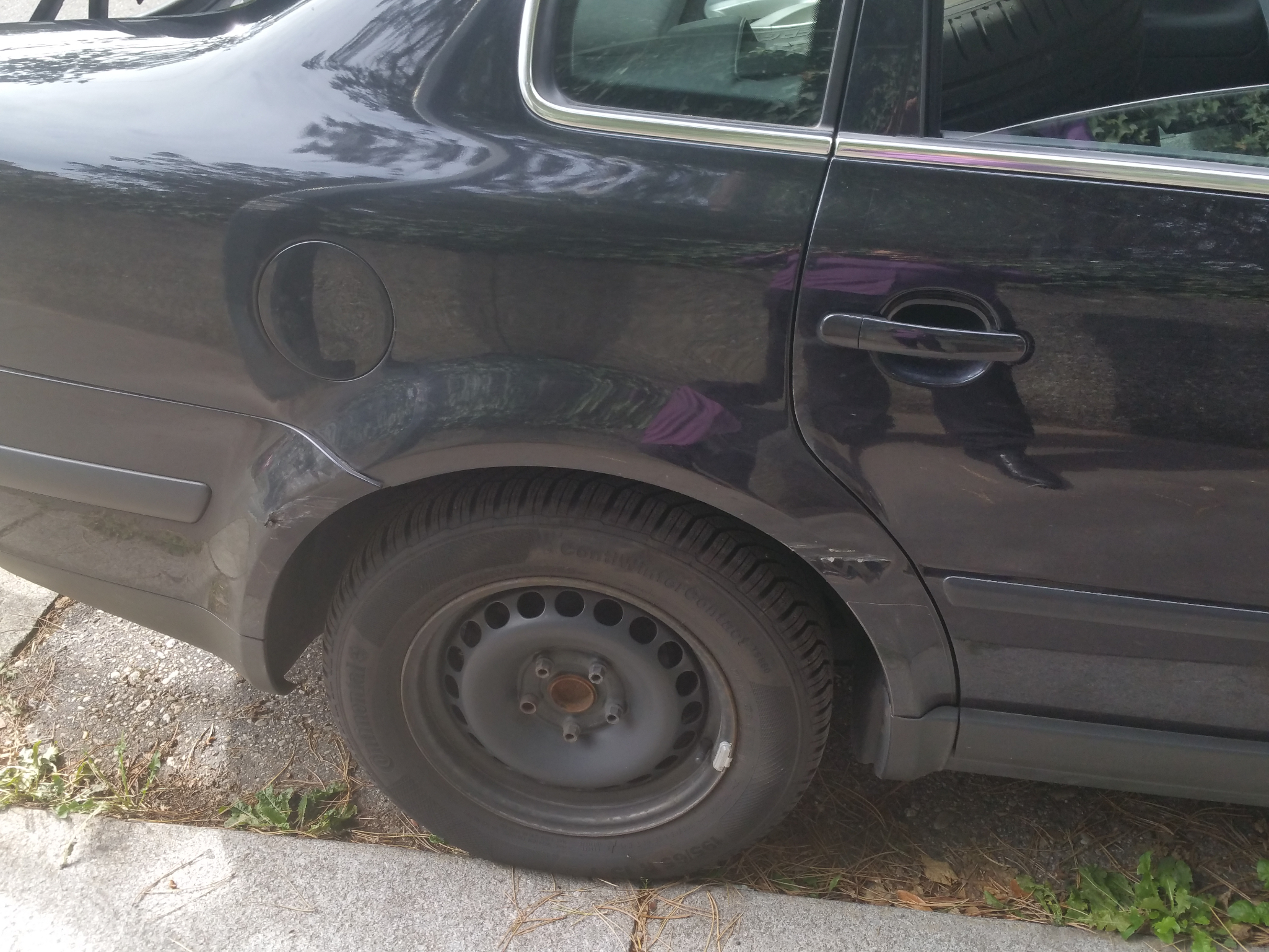 Ако е примерно преден калник, смени го целия. Втора употреба едро габаритни части за Пасат колкото ти душа сака, с повечко търсене може и същия цвят да ги намериш.