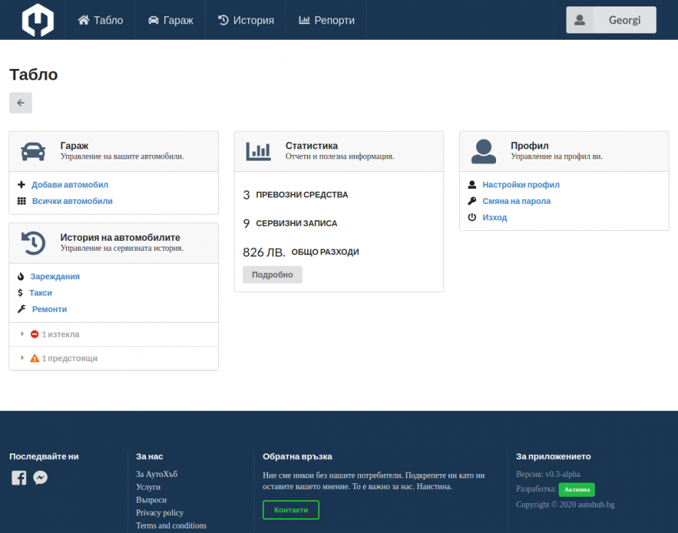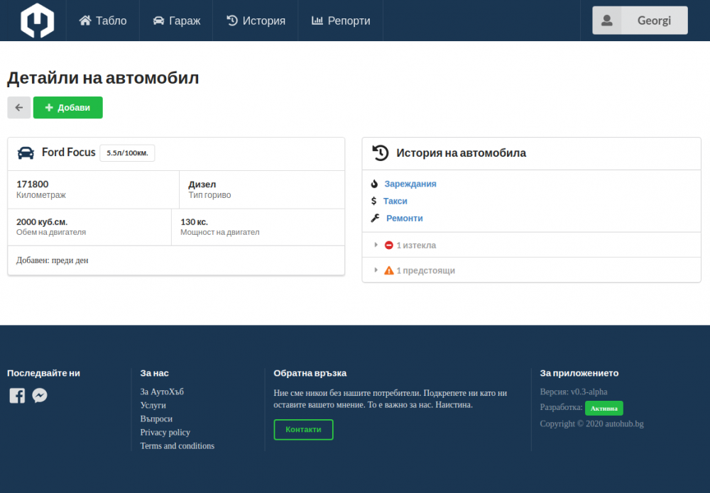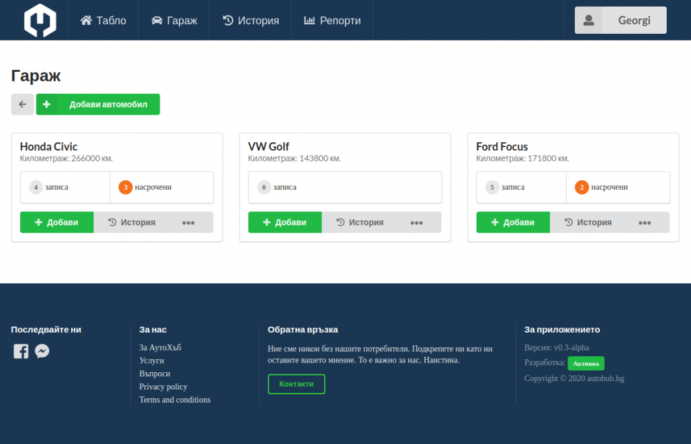 Питам защото, благодарение на извънредната ситуация и помощта на приятели, имах време да поработя над един проект за уеб базирано приложение за водене на сервизна история. Знам, че има доста такива приложения, но целта тук е да предоставим максимално много услуги - безплатно.