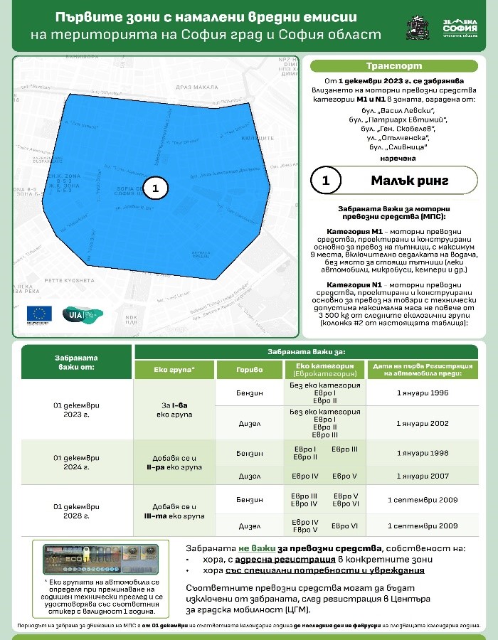 НЕЗ (Нискоемисионни зони) София и автомобили без ЕКО стикер