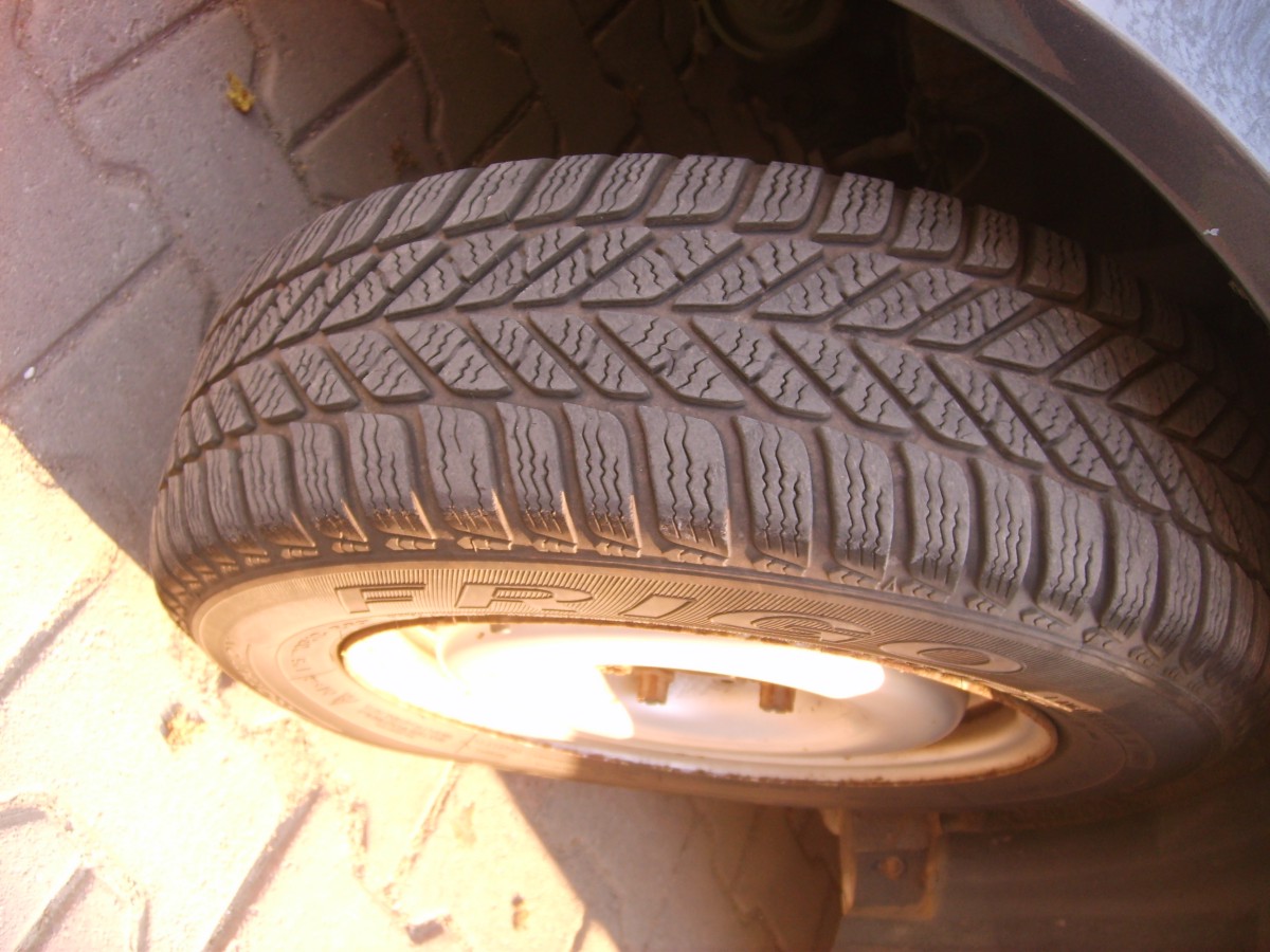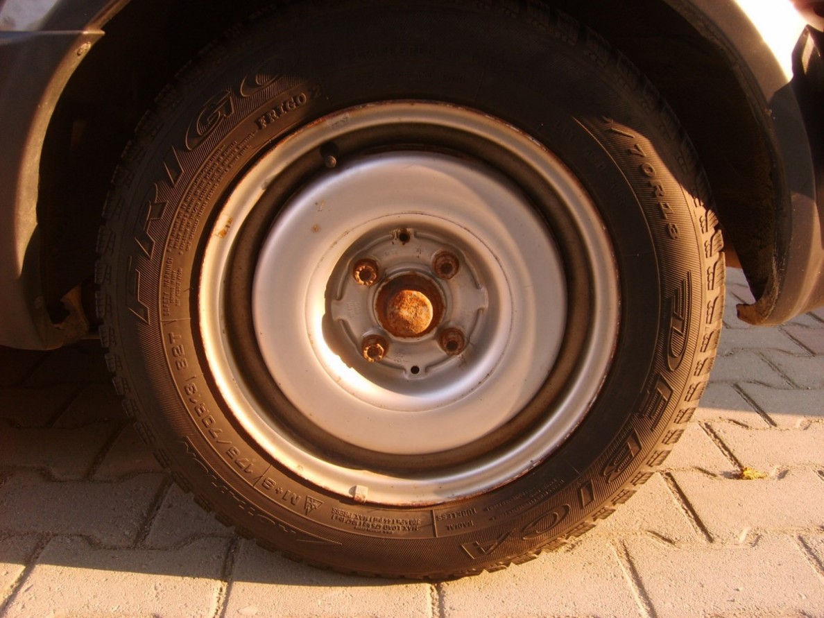 :idea: BTW - тези гуми с джантите от снимката се продават, защото няма да влизат на новите спирачки - гумите са зимни и добри - за 80лв. четирите, джантите са оригиналните 13"-ки - за 70лв. четирите, комплектът около 120лв.