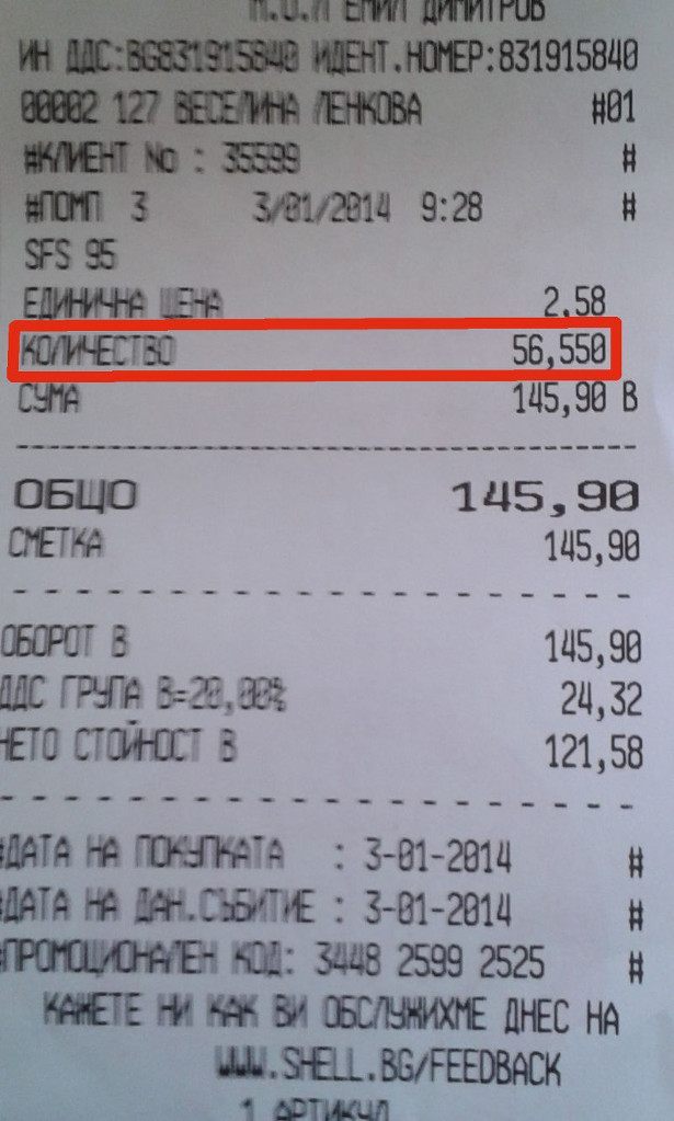 Колеги, искам да разкажа какво ми се случи днес и защо пускам тази тема. Накратко - зареждане на Голф 4 1.6 АКЛ с бензин на бензиностанция SHELL Хаджи Димитър (при моста Чавдар). Разгледайте първо снимката.