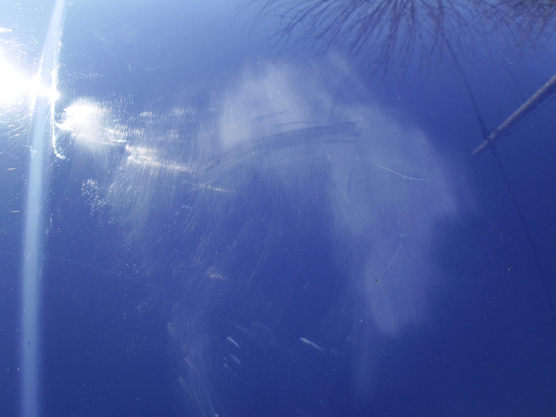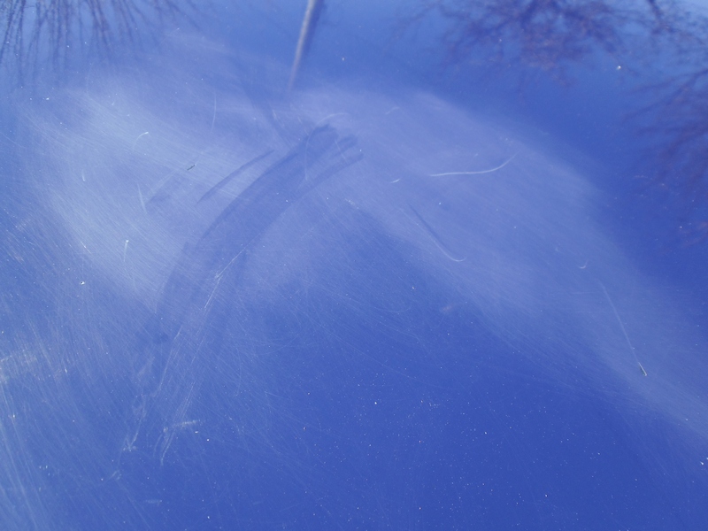 Няколко дни ме нямаше вкъщи и явно деца от махалата са разбрали и са направили предния капак на половера на нищо. Първо като видях си помислих, че е прах или тебешир, но уви, не е. Все едно, че е шкурено по боята