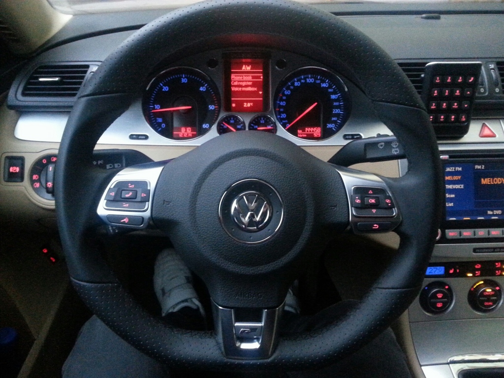 Нужни са ти волана/в комплект с еърбега разбира се/, кабела за еърбега, модул 3С0959653В/1K0959653C/ към който се включва кабела от волана и модул 3C0953549AH/3C0953549AT/, който да "подкара" волана да работи. Не е лошо да провериш предварително дали имаш някой от тези модули щом е хай лайн изпълнение автомобила ти, преди да прибегнеш до покупка. Инсталирането на гореописаните модули и волана става за около 20 минутки. След това е нужна настройка с ВАГ-КОМ...и си готов.