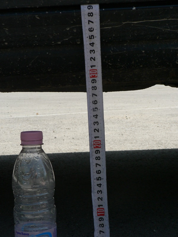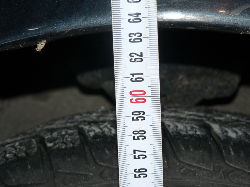 Грешката а била в моят телевизор.Подложката повдига 5см. а новият размер на гумите още около 3см. та общо то повдигане е около 8см.