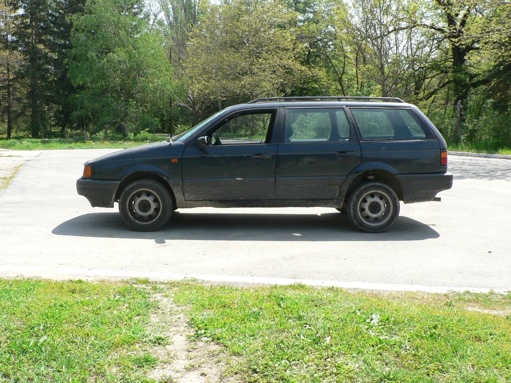Сега за задницата,за съжаление тези дни потърсих снимки за повдигането на задницата но не ги открих явно сам ги изтрил неволно.Та да споделя какво направих със задницата.Повечето си мислят че,като подложат под чашата на амортисьора и готово да така е но зависи какъв резултат се търси защото там може да се подложи само 3см. обикновено на повечето пасатчета са им омекнали пружините и по този начин най евтино се решава проблема с втулки место пружини,и така компенсирате висналата задница, та за по голямо повдигане само с втулки не става или може с нови пружини и втулки, така ще повдигнете 3см. моята цел бе 5см. за това че исках да вмъкна по голям размер гуми и размера е 195/70/15 спрямо стандартния размер които е 185/65/14.На снимките е с размер 195/60/15 за съжаление не можах да намеря снимки с по големият размер гуми. В моят случай аз какво направих, тъй като аз вече бях повдигнал преди години с втулки,пък и возията си ми допадаше та реших да не сменям пружини с нови а да сменя амортисьорите с нови защото моите бяха тръгнали а и неми се оскъпяваше проекта та за това пребягнах до това решение.Оказа се обаче че новите амортисьори са с фиксирана чаша под пружината и за това направих подложка между чашата и пружината,на някои от по горните снимки се виждат подложките.Моите 5см. ги постигнах като подложих между купето и тампона на пружината.Надявам се съм бил изчерпателен на които не му е ясно нека пита с радост ще помогна.