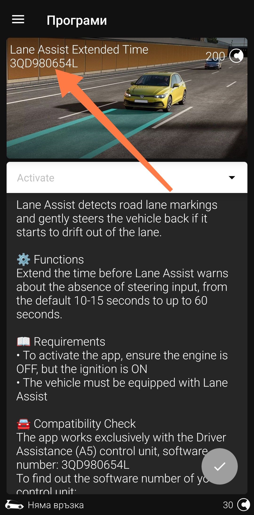 Имам obdeleven и наскоро видях че са пуснали нова апликация(на снимката). Интересува ме да ли при мен може да се кодира същата екстра, защото за сега с Obdeleven не може. Моя номер е 3Q0980654J. Колата е Артеон 2018г.