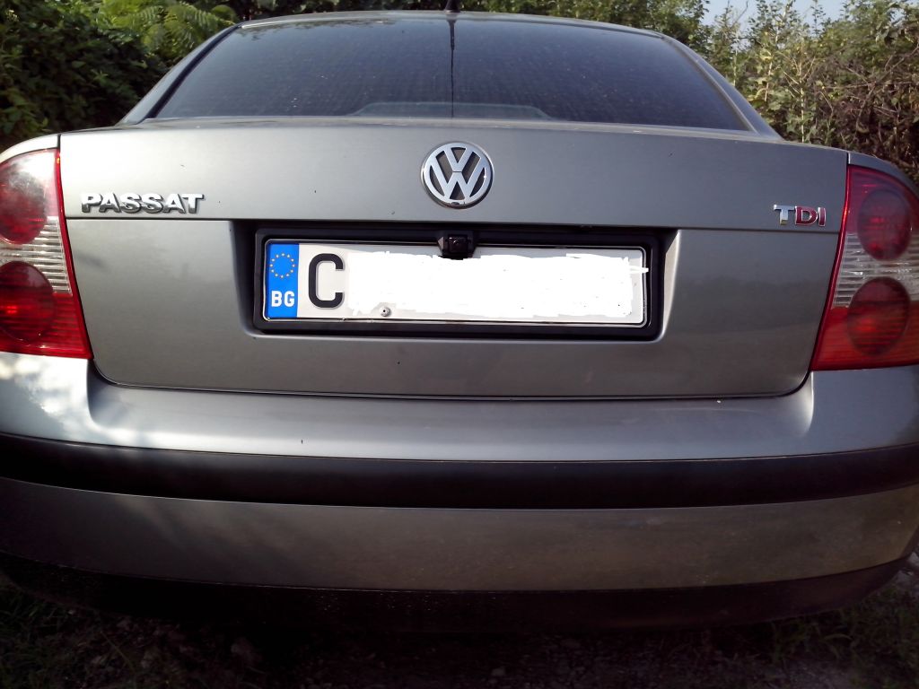Камерката я прекарах лесно . Тя е с оригиналната стойка за задния номер , както се вижда от снимката ( кабела за захранването по принцип се връзва за крушката за задна светлина , но аз си направих ключе с което да я пускам и спирам когато си пожелая.. (така ми е по-интересно !) . Кабела за захранването минава под прага десния , пасажерски , през багажника и с едно тънко телче го прекарах през гуменото уплатнение на багажника . Кабела за видео тои е в комплекта с камерата и него прекарах през прага , но шофиорския (отвих на таблото 2 то болта с торкс и покрай аирбага на конзолата мушнах кабела отдолу и под стаклото предното , като си оставих 20-25см кабелче да се вижда по средата на предното стъкло. На прозореца си имам стоика за навигация (имам една 7 инчова и реших нея да използвам като екран) ,защото когато си купувах пасата изрично го търсих без навигация (и без това оригиналната за нищо не може да се използва освен за крадене и гъзария - телевизия , на което и на телефона мога да гледам ).
