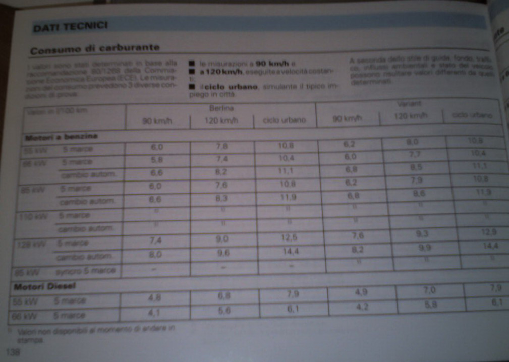 Ами тази таблица не знам колко е меродавна след като моя мотор е ABS и от 92-а година а не както пише след 95-а.