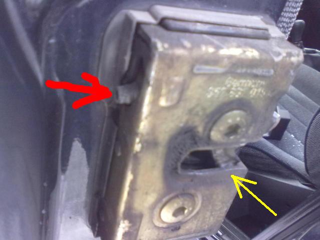 На моите ключалки няма такова лостче което е обозначено с червената стрелка.Модела ми е B3, 2000 куб.16v,136к.с.И Аз бера нерви,като падне температурата под нулата.Напръсках с WD-40,но стана по зле.Имам и Ел.колани,които се задействат при отваряне и затваряне на вратата.Да не би заради това да са по различни ключалките.