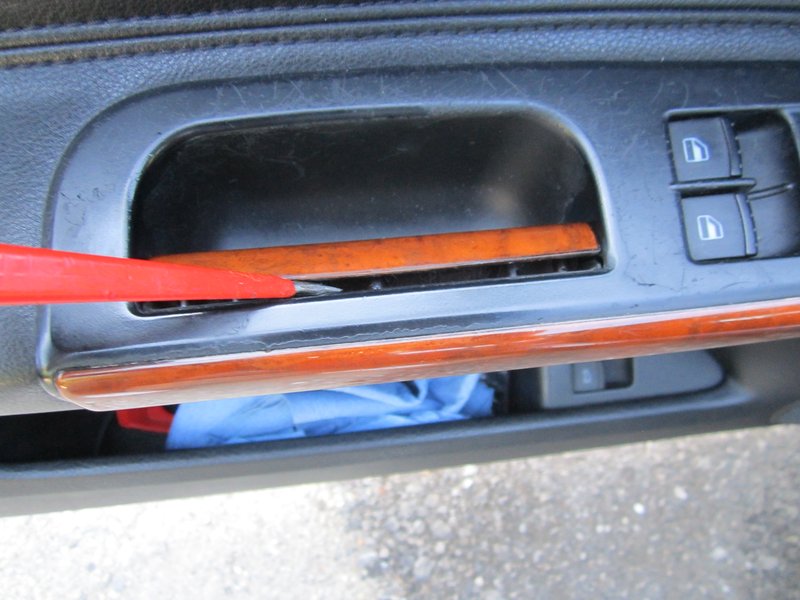 Оказа се, че инструмента е много много важен. Опитах се да махам дръжките на вратите с отвертка но това наранява пластмасата на самата дръжка и става грозно. С тънък но здрав нож се получи по-добре макат и по-трудно. А едната лайсна ( таки дългата на шофьорскта врата ) не можах въобще да я сваля и я облепих на място. С ножчето леко подмушнах фолиото под ръбчетата за да не се разлепя. На всички други места края на фолиото го бях подгънал така,че като ги монтирам да се затиснат плътно.