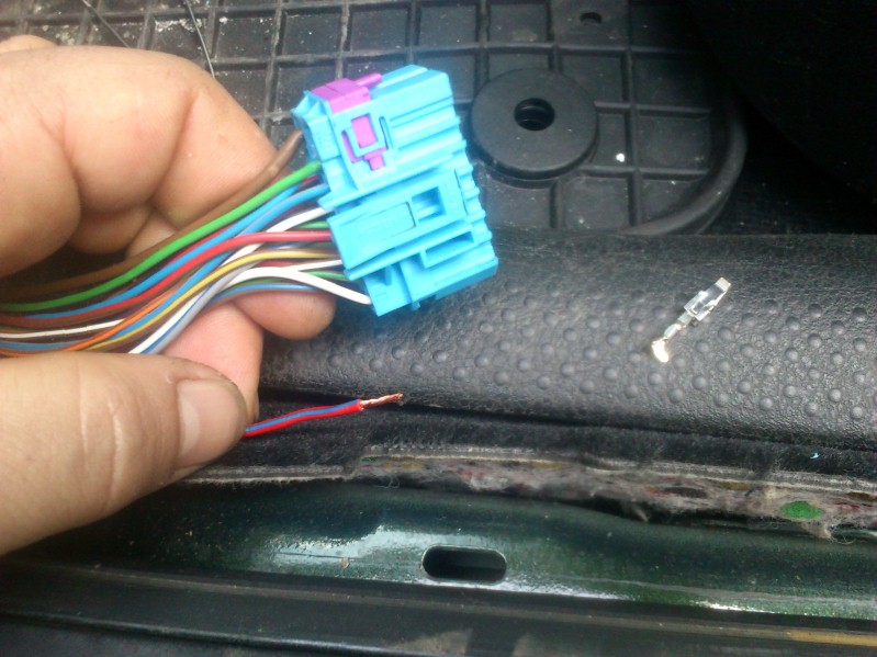 (при някой може да е заета от други кабели...).Прекарах ги към комфорт модула и разкачих малакта 15 пинова букса Т15 на комфорт модула.Отрязах кабел 12 червено/жълт (дебеличък е).Откопчах буксата и се пробвах да премахна пина от гнездо 12,но изплезе на половина