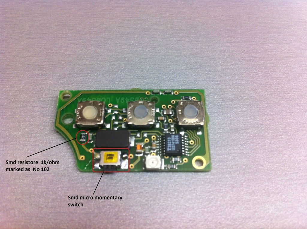 и съпротивление 1К (smd 102)Голф-а е 99" и трудно намерих ключ на 433mhz с новият дизайн,светодиод и място за бутончето за "Panic"!