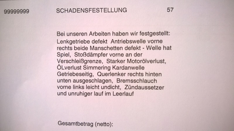 Това ми "изписаха" във фолксваген, маншоните не са "дефект", просто предния ден сменях маншона външния и скобата не съм я сложил добре и изскочила и се качила горе при малкия маншон към двигателя. Че сълзи семеринга на кардана зная, че имам смяна на семеринг на двигателя и от там подлива - зная, открил само че вала имал луфт някакъв, че на предно ляво колело сълзяло спирачна течност, трябва да сменя дихтунгата, пък за рейката обяснението му беше, че като навива на ляво до крайна позиция правел около 10-15минути по малък оборот волана отколкото надясно. Според него било "капут". Грам хидравлична течност не ми губи, смених я преди месец и нещо. Аз кво го карам да търси, той кви глупости ми пише, ама си платих 150 евро де.