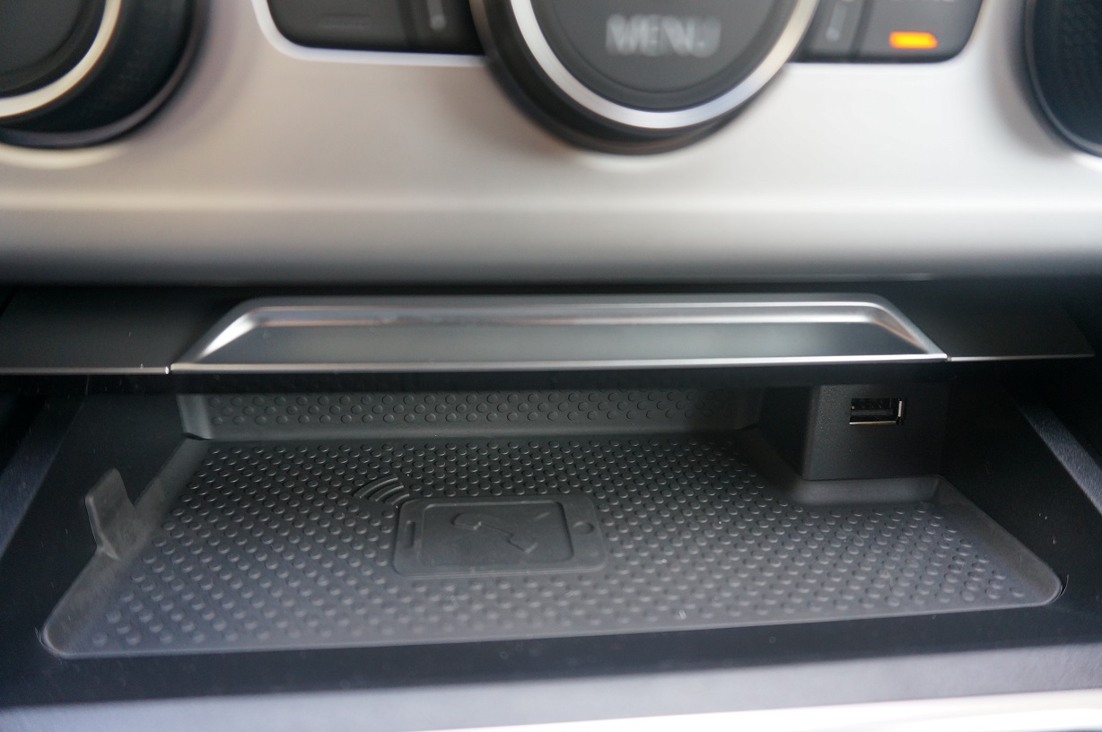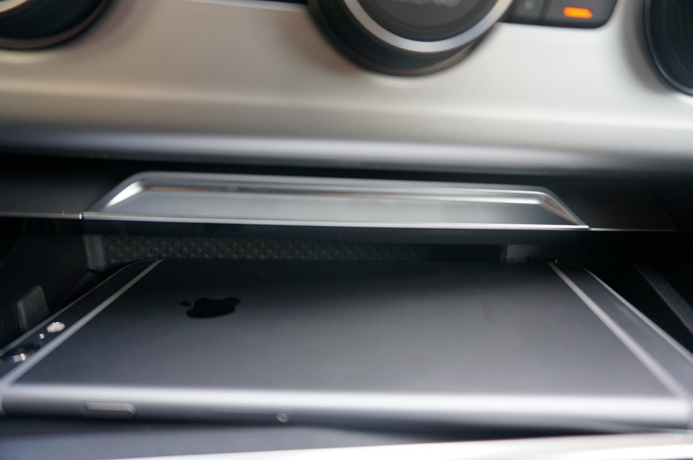 На мястото на пепелника при B7 сега има държач за мобилен телефон който индукционно използва външната антена на автомобила – идеята е страхотна, но…. По големите телефони не влизат!