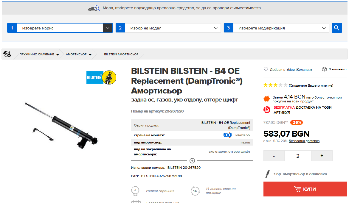 Билщайн не е оригинална част (мое разсъждание е, че е по-добра от оригиналната, която е изкарала някакви 100 000 км). Така че който си ползва отстъпката, ще я вземе и за Билщайна.