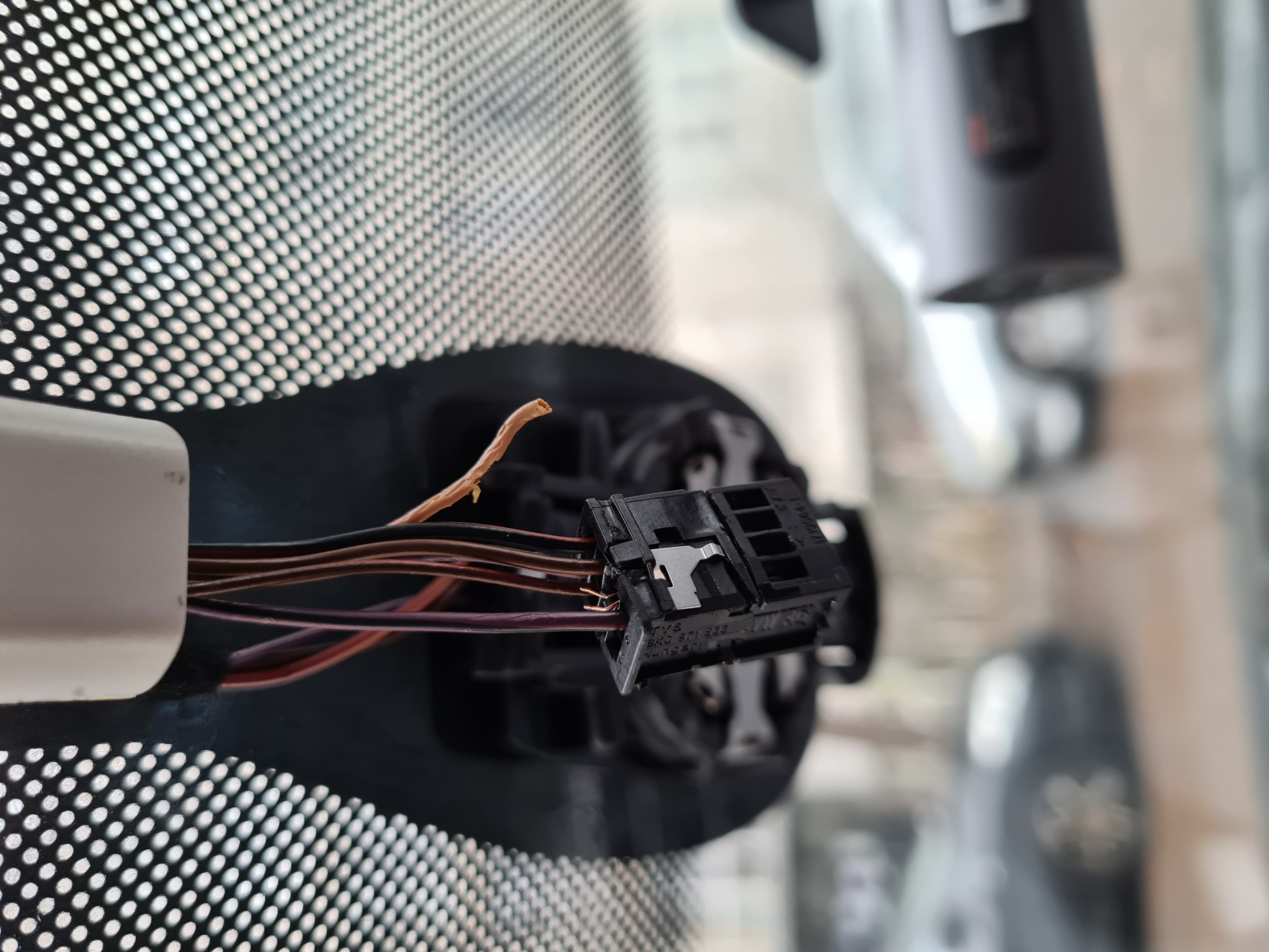 Монтирах огледалото с камерата. Трябваше да извадя пин номер 3 от конектора и да сложа на него пин с кабел към CAN High. После слагам на пин 8 CAN Low, който беше празен при мен и директно пъхнах пинчето на кабела. Малко се озорих с махането на оригиналния пин 3 (оригиналното жълтеникаво кабелче го шунтирах според инструкцията), но след това прозрях, че конекторът се отвяря и пин 3 се избутва с тънка часовникарска отвертка.