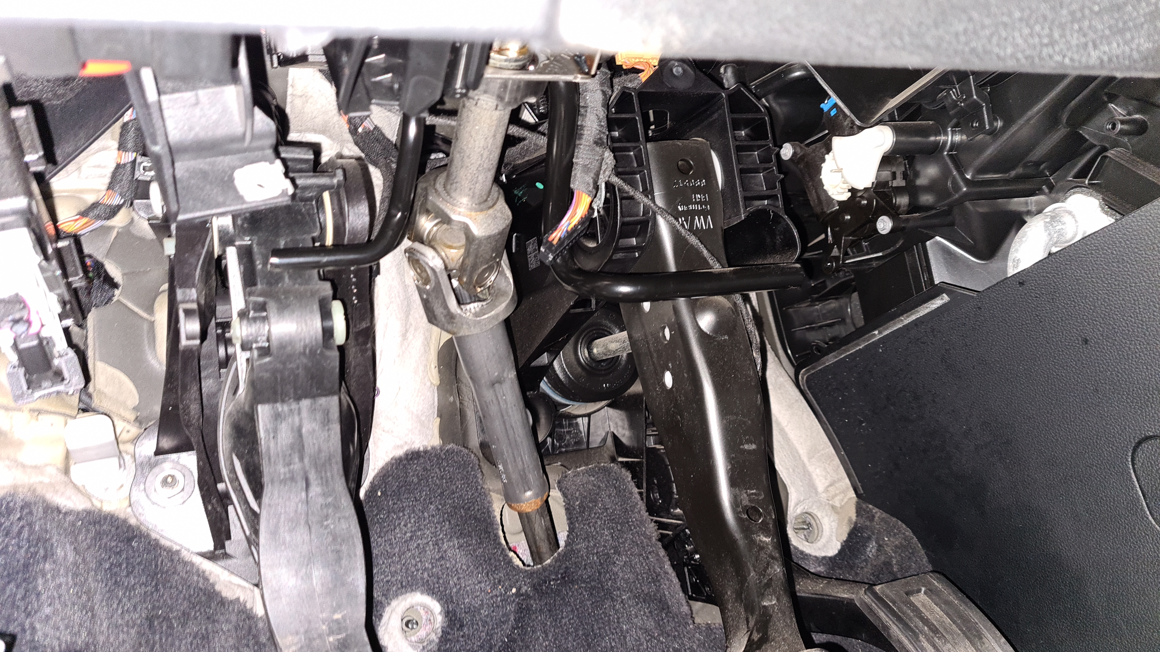 Свалих капака над педалите, под кормилната уредба, държи се на 3 рапидки отпред (напипват се), а от към двигателя с две щипки, който се развиват с права отвертка.