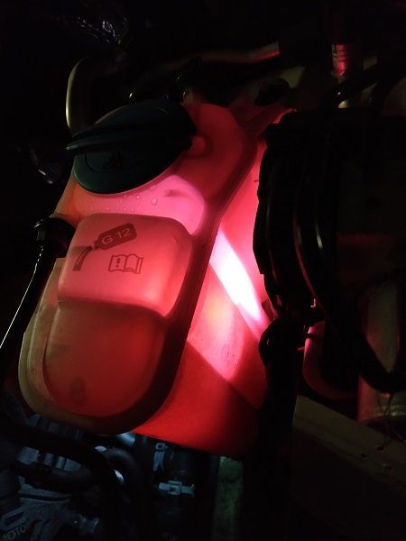 И сега малко шах с пешката: антифризът, който в казанчето изглежда ярко оранжев и мътен, след като извадих малко с най-дългата възможна спринцовка, бъркайки възможно най-дълбоко и внимателно, всъщност е розов, с леки оранжеви оттенъци и прозрачен. Понеже вече бях запазил час за сервиз, там ми показаха, че на две други коли изглежда по същия начин - оранжево и мътно, като гледаш в самото казанче. Някаква оптическа илюзия явно се получава. Остава въпросът с ровозия цвят - предполагам означава, че не е G13 или G12Evo, може би е G12++? И в тоя случай чуденката е дали въобще да го сменям или само да долея - аз клоня все пак да го сменя изцяло с G12Evo, понеже в книжката на колата пише G13.