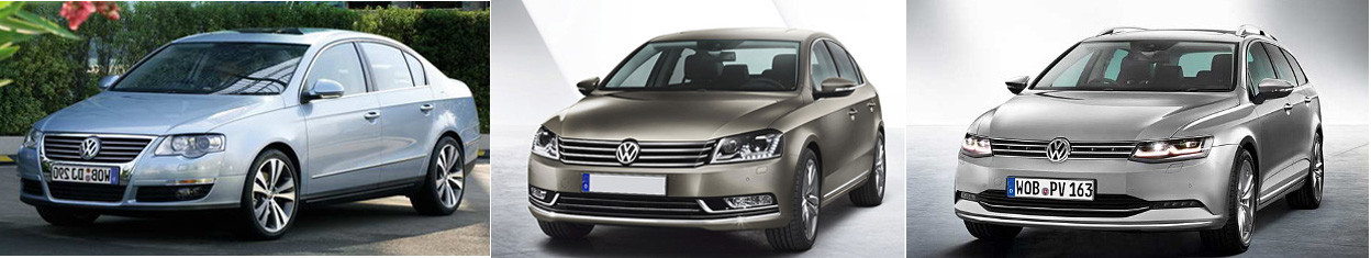 VW Passat: B1 - 1973-1981 (8г.); B2 – 1981-1988 (7г.), B3 – 1988-1993(5г.), B4 – 1993-1996(3г.), B5 – 1997-2005(7г.), B6 – 2006-2011(6г.), B7 – 2011-2014(3 г.)