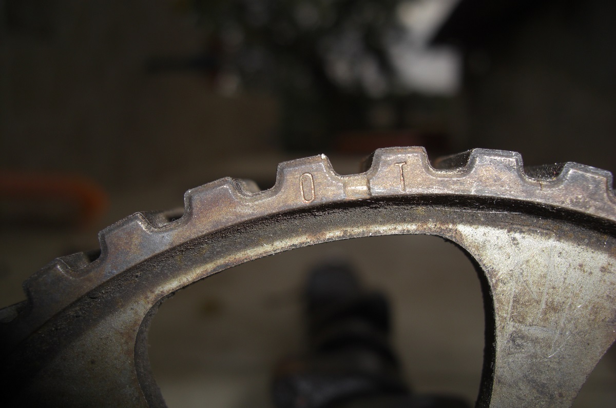 Видях и на маховика две чертички - II I, които май всъщност са OT - отново след почистване. Видях ги обаче във вдлъбнатата част, а не на крайният пръстен, където ми посочвате. Съвпадат приблизително с белега на разпределителният вал.