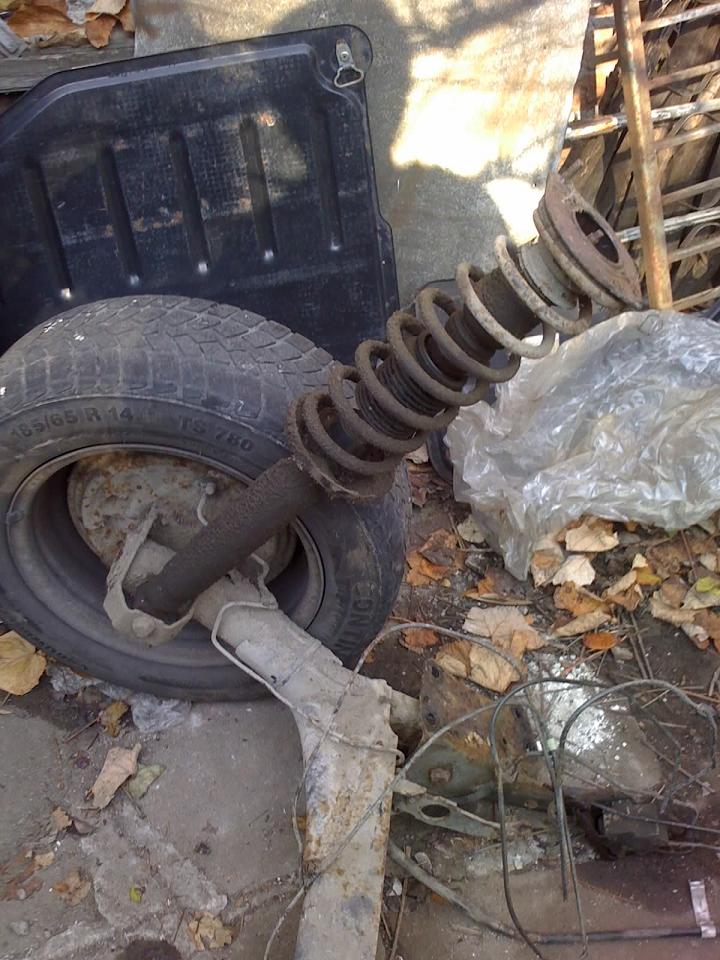 Хм,на комбито са по-корави пружините и не знам как си се справил,аз тях на ръка не мога ...а и за човек,който му е сефте е хубаво да внимава;Аз ползвах клещи чираци,сега бих ги натиснал просто и развил гайката,но пляктора е хубаво да се запаси с чираци,менгеме,тел или каиши,за да не го прасне по главата както казва.То и не виждам смисъл да г вади на този етап,трябва му канал,където да огледа нещата отдолу,докато някой приятел му подскача в багажника.