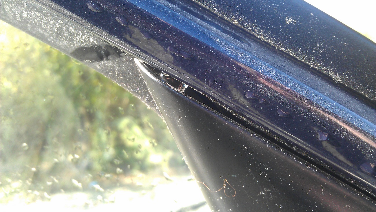 Водата в купето влиза от страничното огледало, от там се стича през тонколонката и всичко се оттича към комфорт-модула "отгоре" , а отдолу пак всичко беше сухо.... Сложихме силикон, но явно не сме го направили като хората, пак влизаше вода в купето, но мен ме съмнява дали не го оставихме малко време да съхне.....