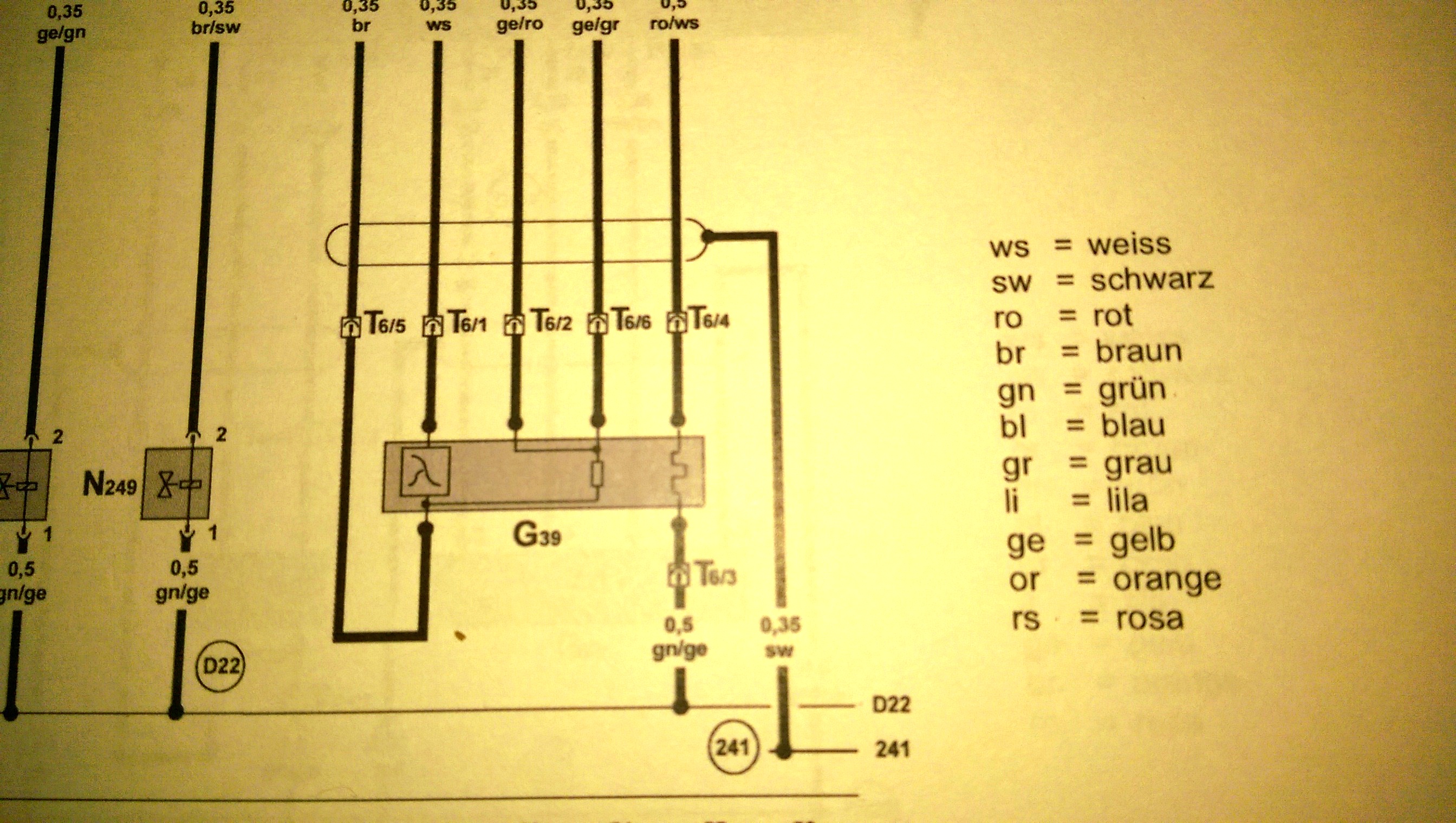 Според елсхема за моят Пасат кабела на ламбда сонда пред Кат трябва да има 6 захранващи кабела плюс един черен.