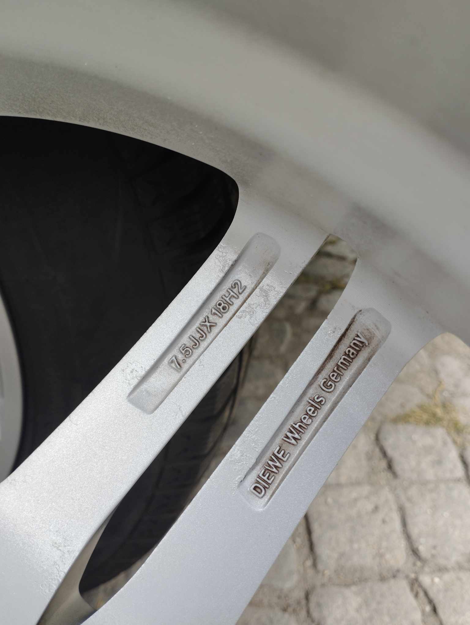 Оригиналната джантата Monterey за R-Line Passat B8 e 8J x 18 ET 44 с гуми 235/45/18 стърчи с около 14 мм навън от 7Jx16 ET45 с гуми 215/60/16.