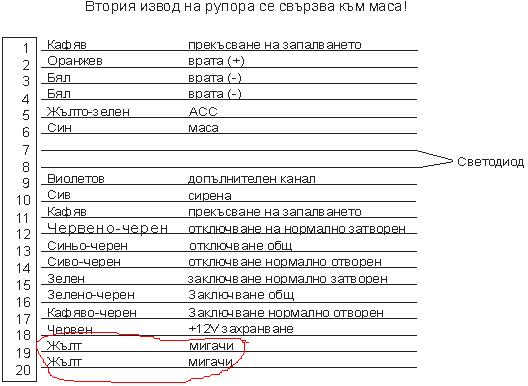 Значи проблема е че варзах алармата без особен проблем сичко бачка перфектно ама не мога да намеря коя жица е аджеба тая кадето като пусниш алармата сичко да мига като все едно дискотека баце ако некои знае ша е екстра да обади