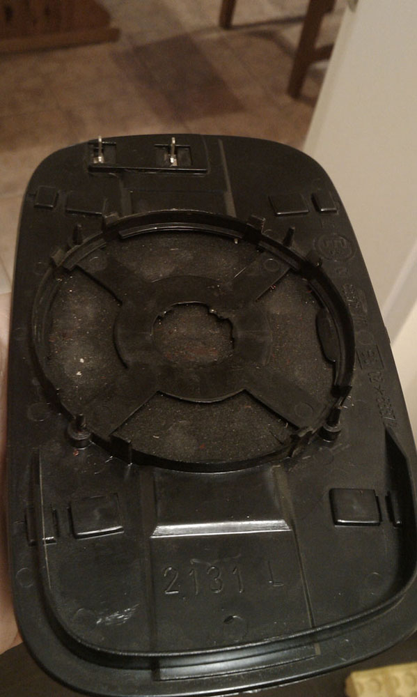 Аз бутам огледалото така че външния край да излезе максимално навън. После бъркам между стъклото и корубата с малка отвека. Като откопчея 2 от 4-те щифтчета стклото се маха