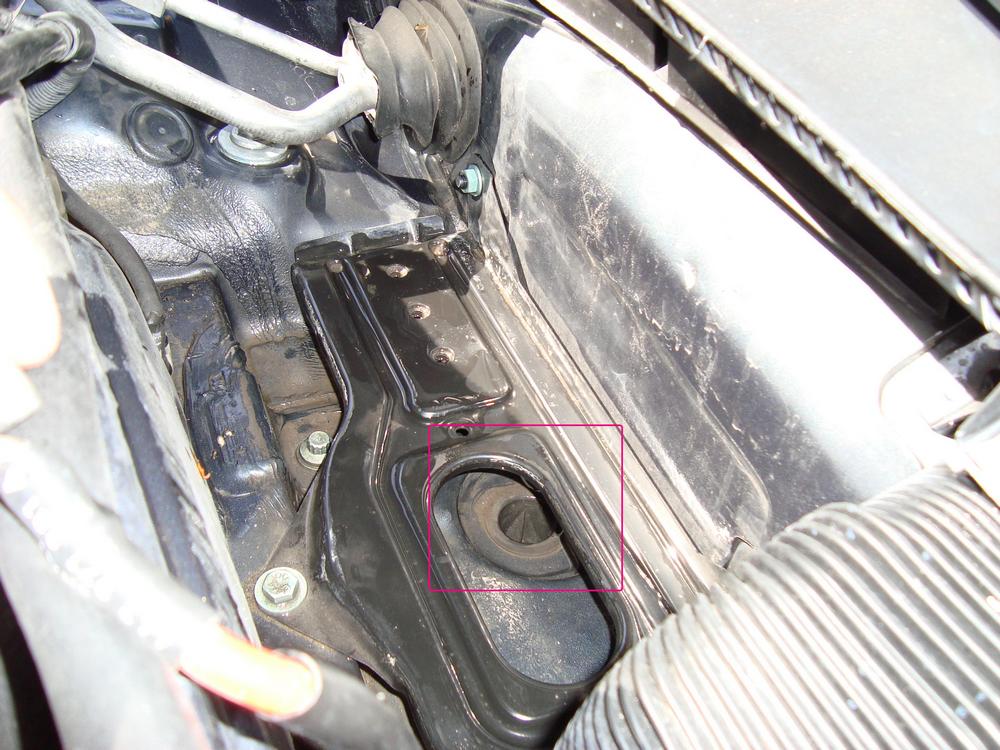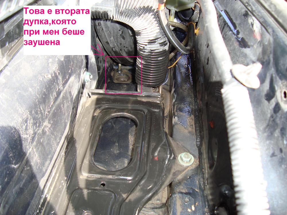 Вторият отвор е под кутията на компютъра (черната кутия), но до него се стига лесно, когато акумулаторът е изместен. Бръкнете с ръка и напипайте маншона, за да се ориентирате по-лесно. Почиства се по същия начин.