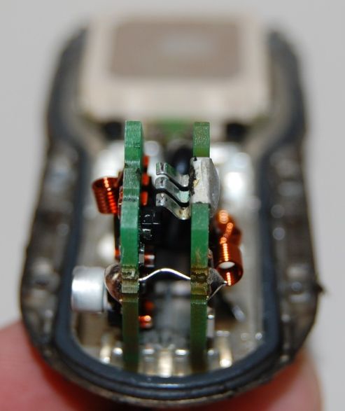 Така изглежда "гол", и тук се вижда, че горните ми опасения да не скъсам някое кабелче са били напразни - трите метални крачета правят контакт с това...