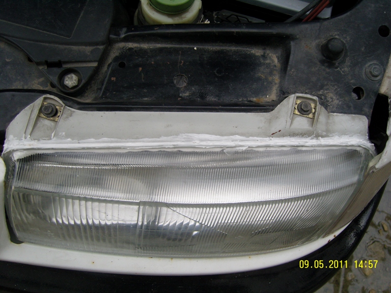 Имах същият проблем...с изпотяването...фара здрав без пукнатини и се изпотява и така 2,3 дни докато изсъхне...викам си аааа не...грабнах силикона и почнах да мажа от горната страна където фара влиза в бронята ама стабилно и за сега не ми е давало ядове,да не е същото и при теб?