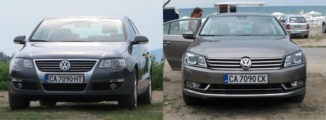 За мен Б7 е по-красив от Б6. Предните фарове, предния капак, решетката, огледалата, фаровете за мъгла - всичко изглежда по-добре. На Б6 фаровете чак ме дразнят колко са грозни. Лично мнение разбира се.