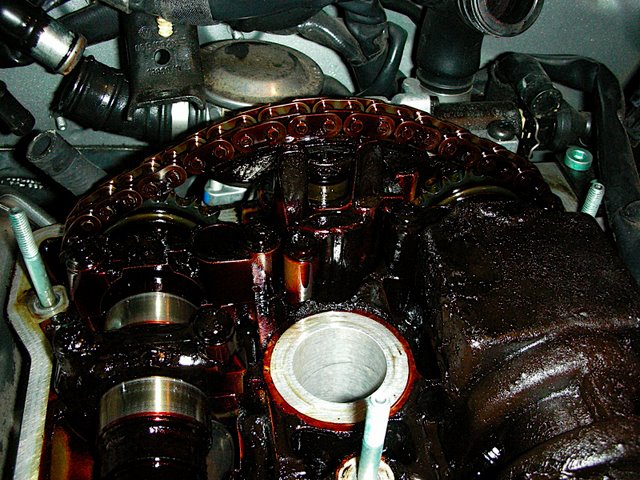 Сега зимата при тези минусови температури това 15W-40 става много гъсто и при палене сутрин не качва бързо масло на главата пък и сигурно е минерално (15W-40).Тази кола се кара само и единствено с 0W-40 или 5W-40 пълна синтетика и се сменя на 5000-7000км - знам скъпо е но нямаш избор с този двигател.Лично аз ползвам CASTROL EDGE 0w-40 ili MOBIL 1 0W-40 и задължително с големия маслен филтър който прави така че двигателя да побере точно 4 литра масло.Ето това на снимката е карано с минерално масло.
