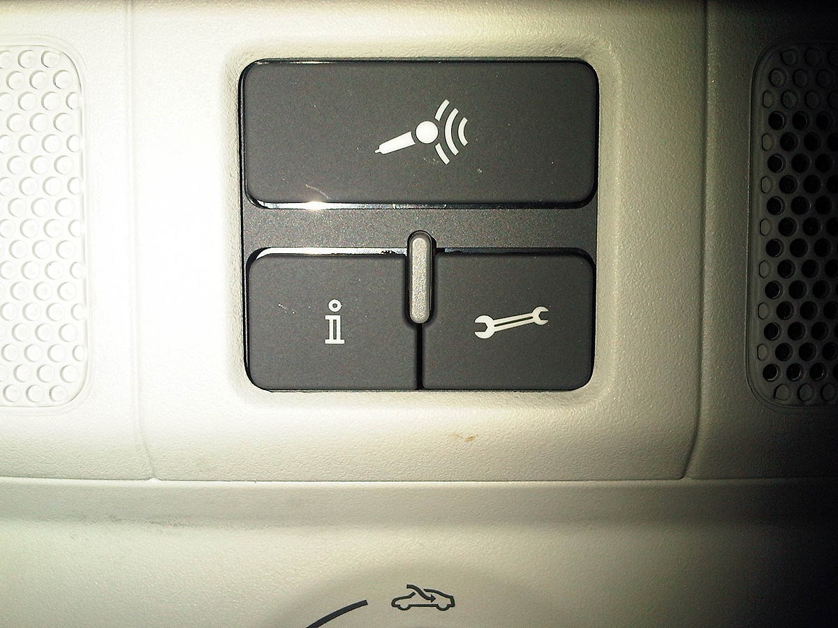 Намират се на козолата, от която се управлява шибидаха и осветлението на автомобила. Има 3 бутона (виж прикачената снимка). Един голям, на който е изобразен микрофон, получаващ сигнал и два малки, като единия малък е с "i", като за информация, а другият е с гаечен ключ.