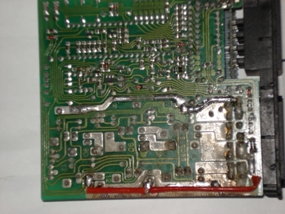 3.При проверка се оказа, че е изгорял предпазителя 25А който захранва ел.моторите на стъклата. Част от пистата на платката на комфорт модула след като го отворих/по моя преценка мисля ,че тази писта е маса/ беше изгоряла,възстанових я. Без да е отстранена причината не се наемам да включа комфорт модула и карам така без да ползвам екстрата ел.стъкла вече 2 години.