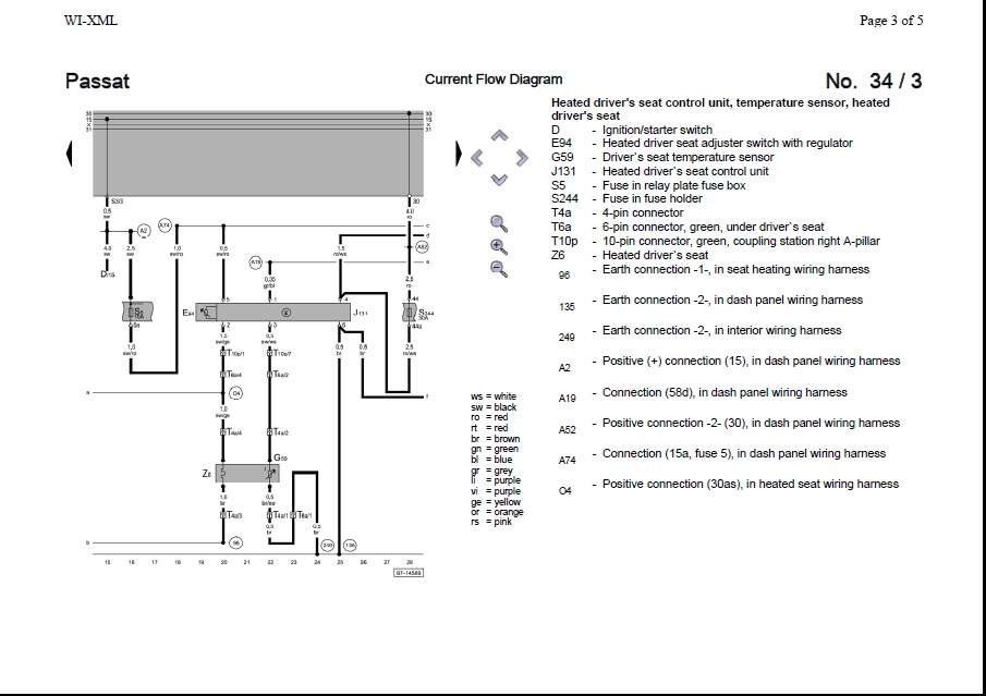 На баща ми на Пасата (Б5, 1997г., AHU мотор) спря да му работи подгрева на шофьорската седалка. Пасажерската обаче си работи. Вчера извадих ел. схемите от ElsaWIN и се хванах да меря с мултицета и се озадачих. Първо установих, че не достигат 12 волта до седалката. Предпазителя, който е 30А е здрав. На схемата има и един, който е 10А, но ме съмнява да е от него. После започнах да меря седалката дали има верига. Мултицета обаче не изпищя, което ме озадачава, че има прекъснат нагревател. Също така не показва, че има съпротивление. Пробвах на пасажерската седалка, веднага изпищя, даже и измерих 3 ома съпротивление. До нея също има и 12 волта.