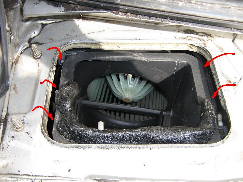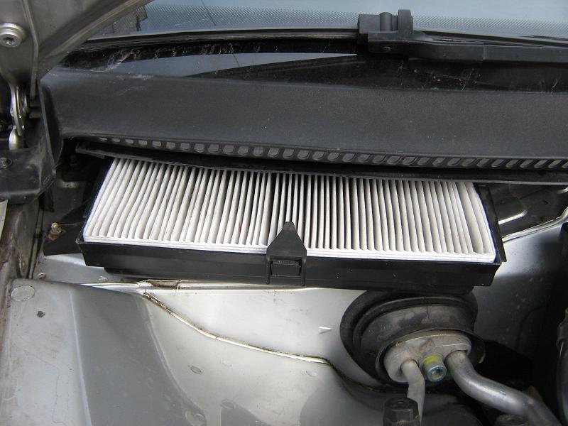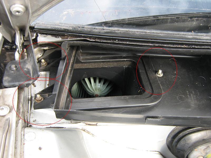3. Премахваме малката пластмасова кора под чистачките. Тук видях малко зор а то било мн. просто и лесно. Кората се държи на две щипки, в средата и в края където е кутията на компютъра (шофьорската страна). След което кората излиза вертикално на горе, като също е желателно да се започне от някой от краищата и. Не се дърпа на пред или на зад! Само на горе. Излиза лесно. Идеята е да получим достъп до кутията на компютъра, кутията на филтъра и отводнителните канали.