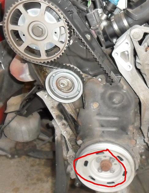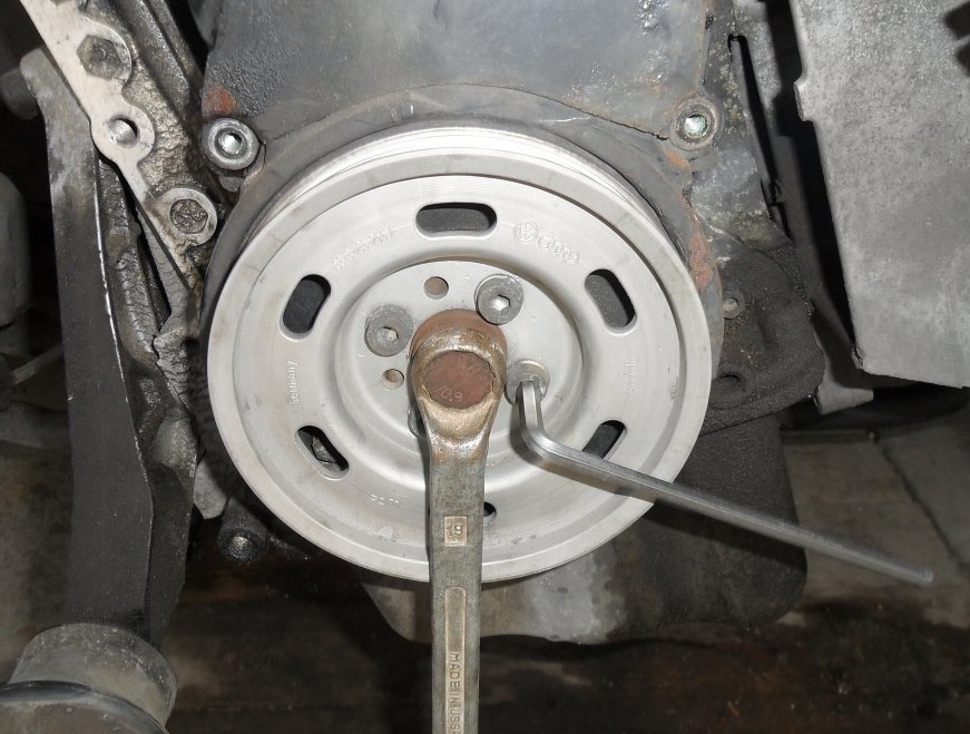 Следващата цел е сваляне на ролката за пистовият ремък, захваната за коляновият вал: