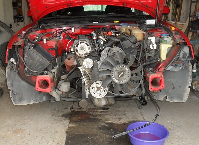 Има вариант за работа по ремъците без да се сваля цялата предна част с фаровете и радиатора, но аз предпочетох да я сваля.
